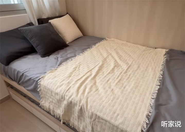 但床底也并未完全放弃收纳,将最后一处空间榨干后,床底多出了三个超薄抽屉,用来收纳春夏的薄衫毫无问题,反正是在香港,也不会有太厚的衣服。